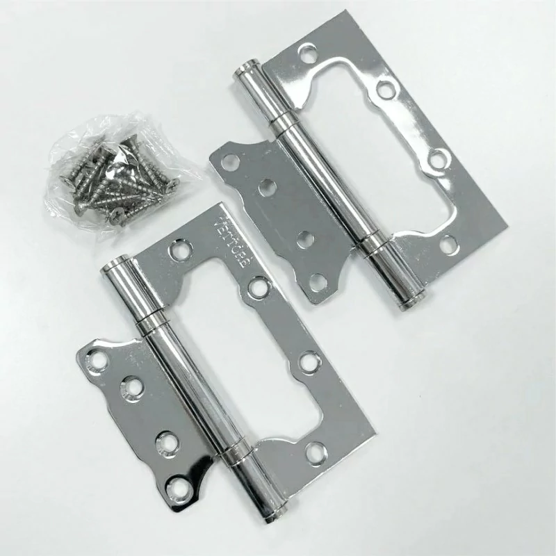 Петли накладные VЕTTORE FLUSH 100×75×2.5mm CP (Хром), с помощью которых дверь прикрепляется к раме, изготовлены из стали.