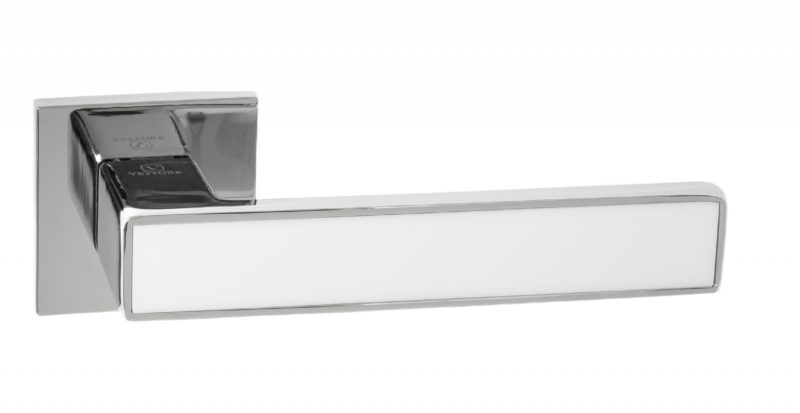 Дверная ручка ABRISS R50.120 CP/WH — изготовлена из цинкового сплава.