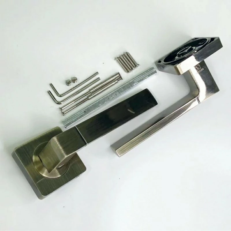 Комплект: две ручки на одно дверное полотно, монтажный комплект, соединительный квадрат (8мм*8мм*110 мм).