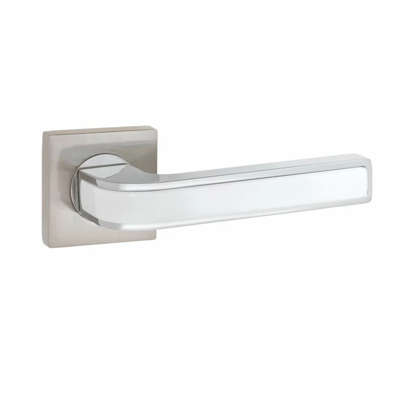Дверная ручка VETTORE R06.130 SN/CP выполнена из алюминиевого сплава.