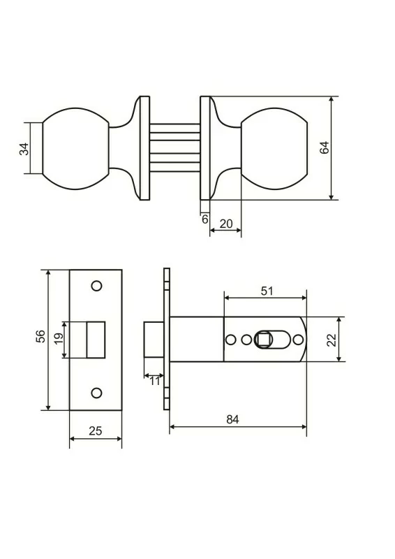 Ручка-защелка фалевая, раздельная для межкомнатных дверей.