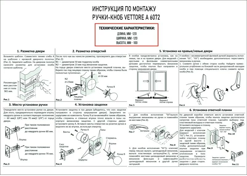 Толщина двери: от 35 до 45 мм.