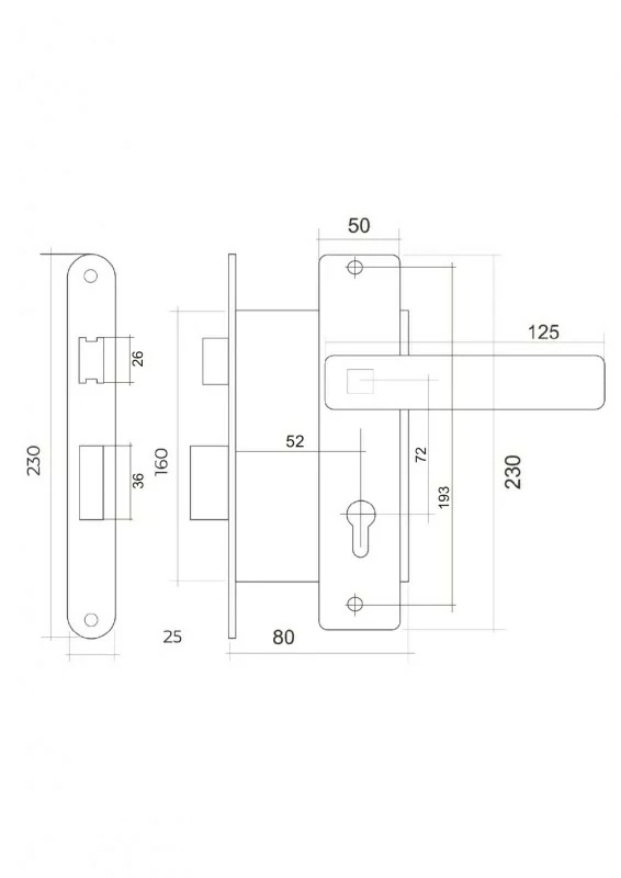 -Корпус замка -Комплект ручек -Стяжные винты -Ответная планка