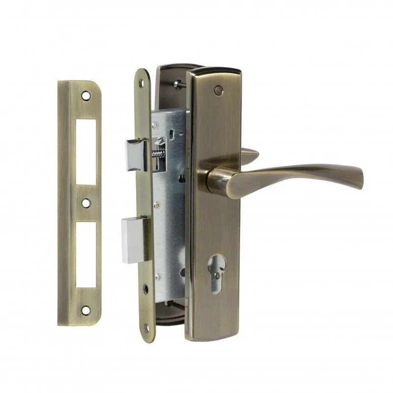Замок врезной VЕTTORE 7255-2 AB в комплекте с ручкой (Бронза)